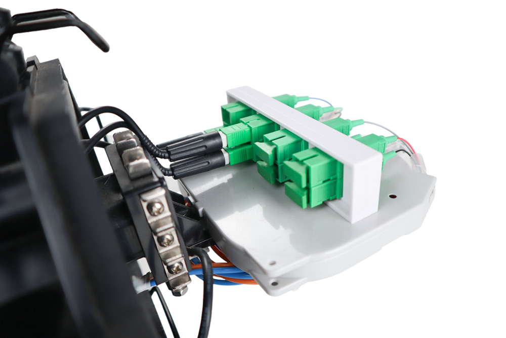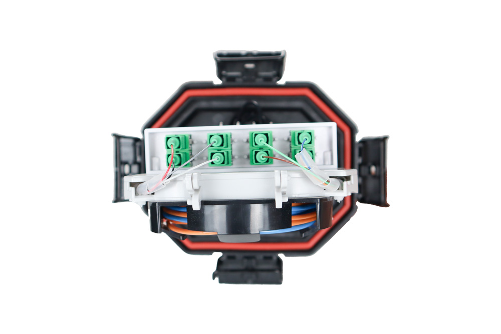 Cierre de Empalme FTTx segundo nivel para 8 acopladores SC simplex y Divisor Óptico 1X8 SCA grado IP68 Clamp-Block