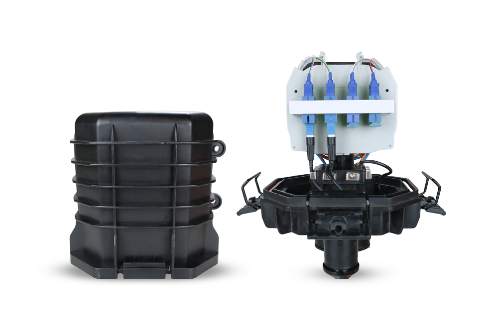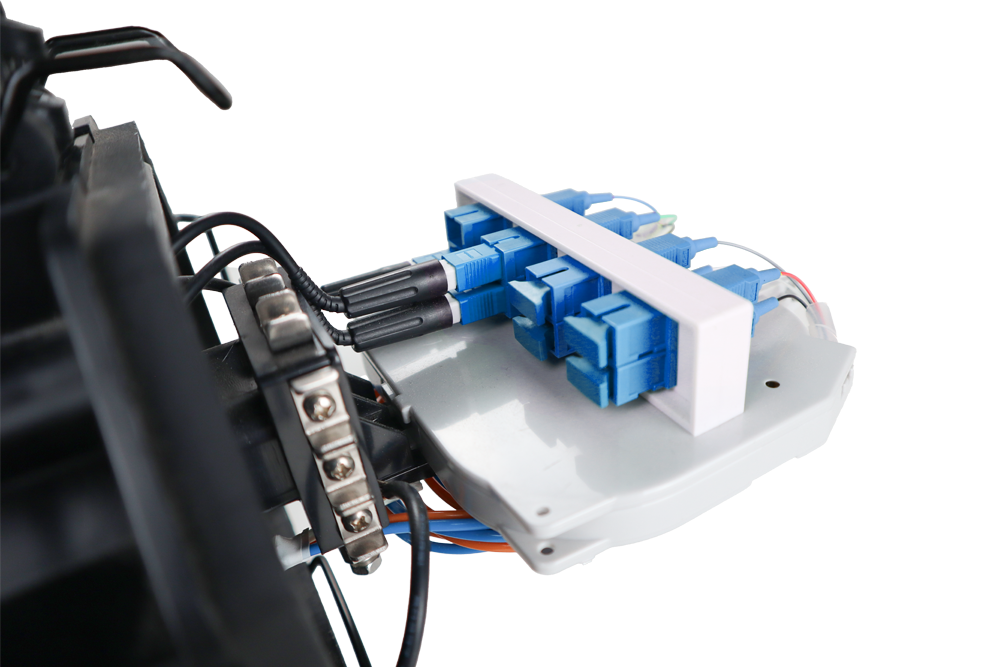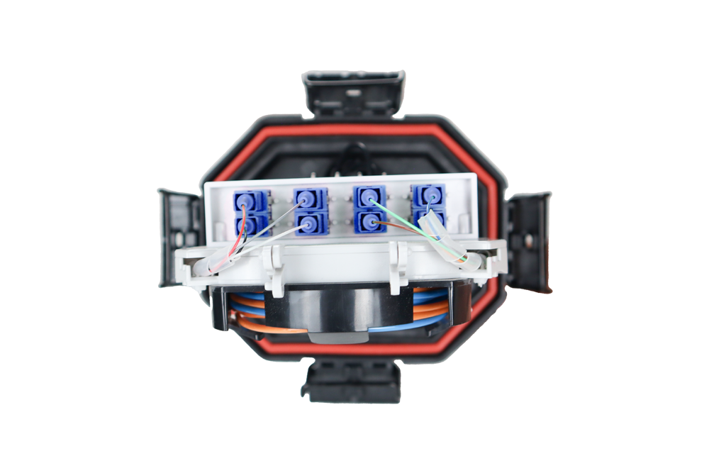 Cierre de Empalme FTTx segundo nivel para 8 acopladores SC simplex y Divisor Óptico 1X8 SCU grado IP68 Clamp-Block