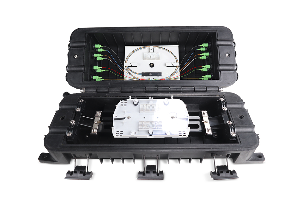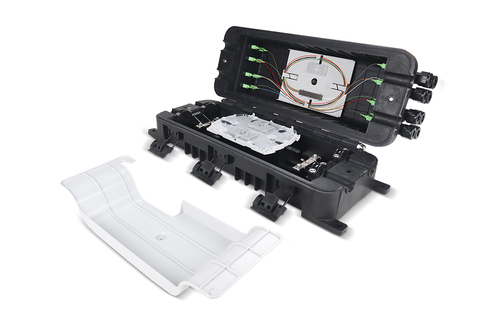 Cierre de Empalme QuickNap de 16 Acopladores SC Simplex y PLC splittler 1x16 SCA IP67 Clamp-Block para 144 empalmes (incluye charolas)